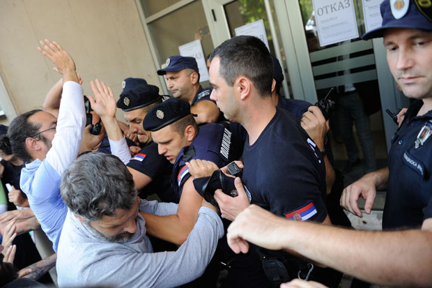 - Ne. To se nije dogodilo! Mi smo mu uručili otkaze - rekao je Veselinović. - Ni tog povređenog policajca nismo videli. Kada pregledamo snimke sa skupa utvrdićemo šta se zaista desilo i da li ćemo pokretati proces, jer su i članovi naše inicijative napadnuti.
