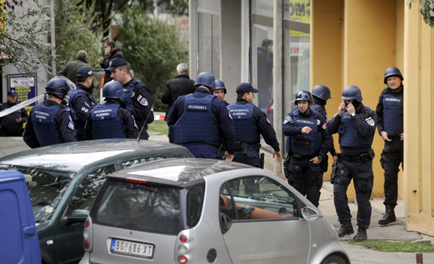 Ubrzo su stigli specijalni timovi posebne jedinice Policijske brigade, naoružani dugim cevima i pod punom opremom. "Specijalci" su blokirali sve prilaze oko zgrade. I dok su ekipe tražile otiske u lokalu, u sklopu koga se nalaze menjačnica i šalter pošte, brojni inspektori pratili su moguću trasu kretanja razbojnika. Kamere na ulazu u objekat u kome se nalazila menjačnica nije bilo, zato što ju je, kako navodi prodavačica iz radnje u prizemlju zgrade, vlasnik nedavno odneo na popravku.