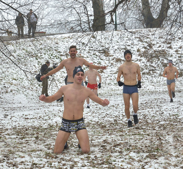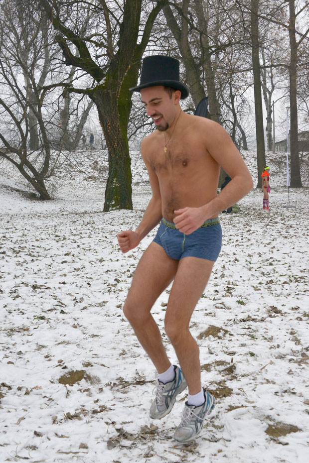 Naoružani dobrim raspoloženjem, rešeni da teraju inat živi u termometru koja je bila na sedmom podeljku ispod nule, izdržljivi i hrabri sprinteri zauzeli su startne pozicije. Devojke su bile u kupaćim kostimima sa kapama i rukavicama, dok su muškarci, većina u boksericama, istrčali na "debelom" minusu stazu od jednog kilometra. Kako bi se aklimatiozvali i što bolje podneli trku, neki su se i mazali snegom.