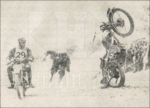 Najzad, jedan trkački motocikl i trenutak kada je ostao bez vozača ovekovečeni su tako da bi snimak i danas predstavljao vrhunsku atrakciju sa sportskih borilišta.