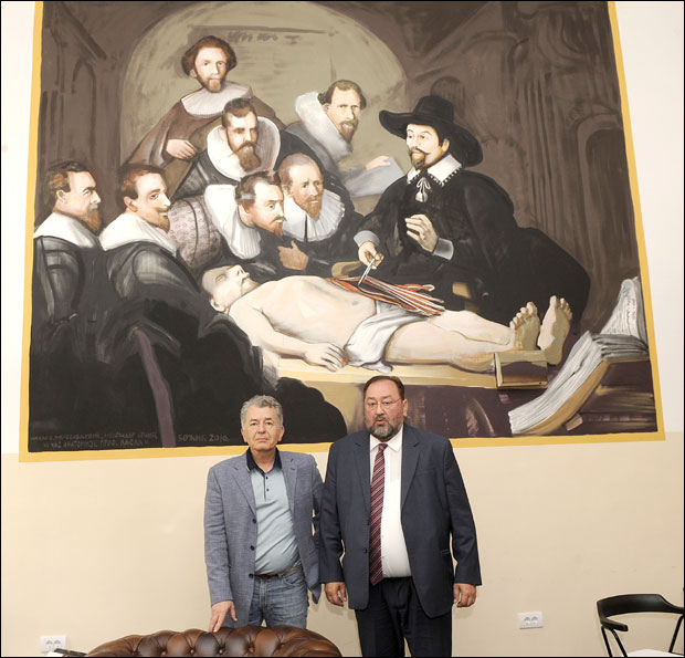 * Dr Milan Milisavljević i dr Laslo Puškaš ispod Rembrantovog "Časa anatomije"