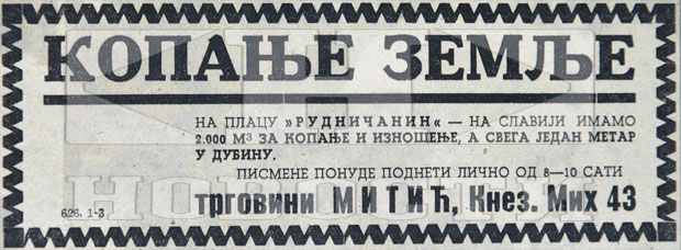 Trgovini "Mitić", vlasnicima istoimene robne kuće u Knez Mihailovoj 43, bili su potrebni radnici koji bi na Slaviji iskopali 2.000 kubnih metara zemlje kako bi bio sagrađen novi objekat. Posao je ostao decenijama neokončan, a rupetinu koja je ostala posle završenog kopanja Beograđani su dugo zvali "Mitićeva rupa".