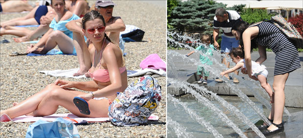 Zbog tropskih temperatura grad je u nedelju bio sablasno pust, građani spas potražili na kupalištima. Bazeni krcati, na Adi Ciganliji zbog veslača brčkanje samo uz obalu