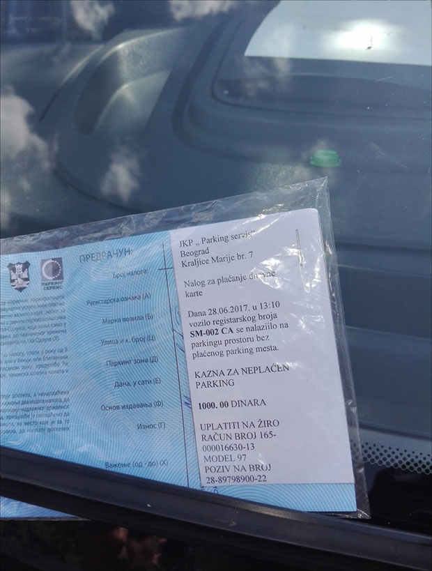Kada je radnik "Parking servisa" u sredu ujutro otkrio plavi nalog za dnevnu kartu sa prikačenim falsifikovanim isečkom, koji ne pripada ovom preduzeću, mnogi vozači mogli su da odahnu. Prvi znak za uzbunu bio je lažni iznos. Umesto originalnog fiskalnog isečka, uz nalog je ostavljen papir sa uredno unetim registarskim oznakama vozila i cifra od 1.000 dinara.