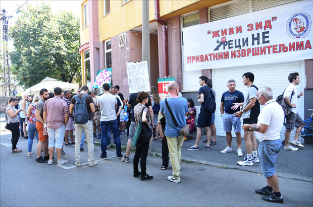 POKRET "Živi zid", organizacije "Marks 21" i "Kolektivna odbrana stanara" prepoznali su vapaj Tatjane Aničić. Nekoliko desetina ljudi, mahom mladih, okupilo se ispred ulaza u zgradu da bi sprečili naum izvršitelja. Poneli su i transparente "Bez krova niko!", "Ne damo!".