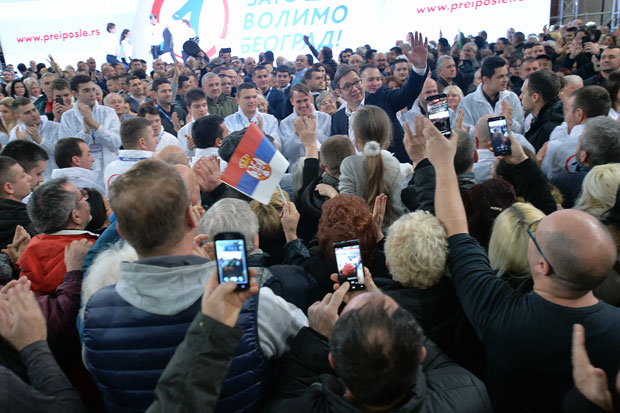 Šef naprednjaka Aleksandar Vučić na predizbornom skupu u Beogradu o politici Srbije i kritikama opozicije