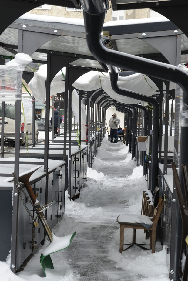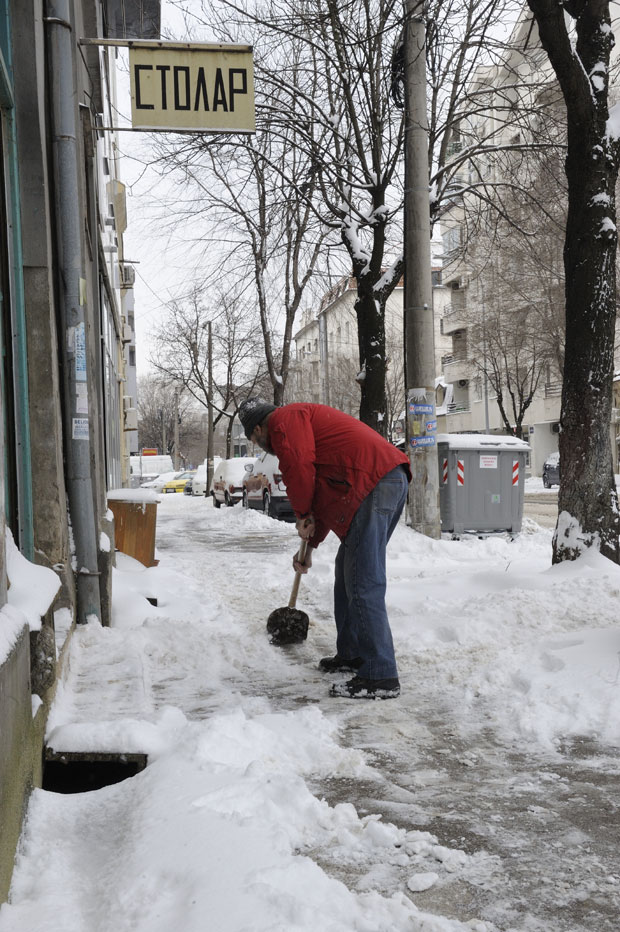 Belim pokrivačem bili su zatrpani pločnici ispred lokala, zgrada, pa čak i ispred javnih ustanova, koji su dužni da sneg očiste. Iako zbog neprohodnih prilaza vlasnicima lokala i sugrađanima preti kazna od 5.000 dinara, a pravnim licima i do 10 puta više, mnogi ovu svoju obavezu nisu ispunili. Sa lopatama u rukama bili su samo radnici u prodavnicama, koji su zarad mušterija očistili prilaze od ranog jutra.