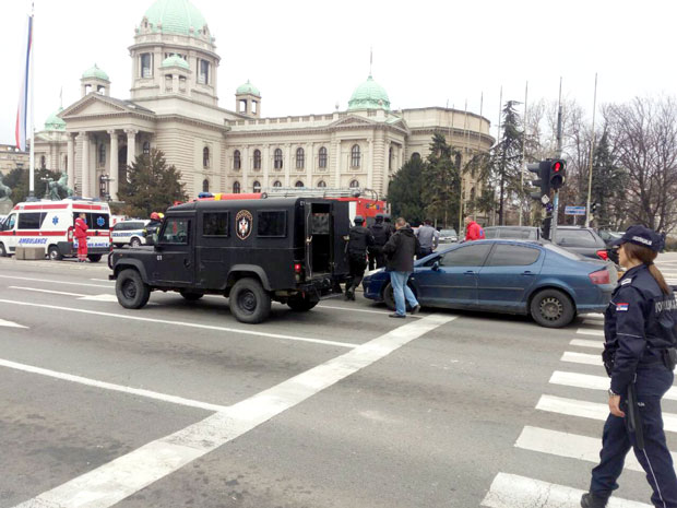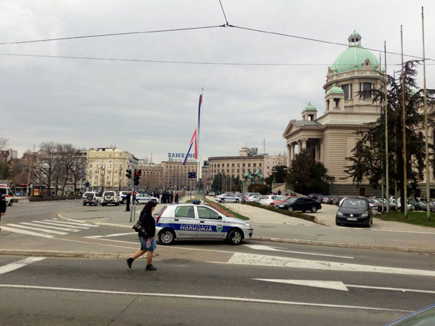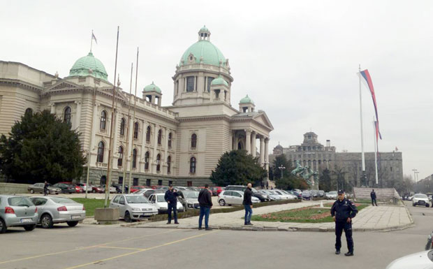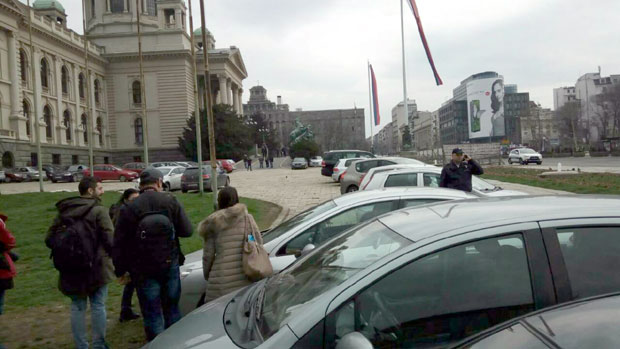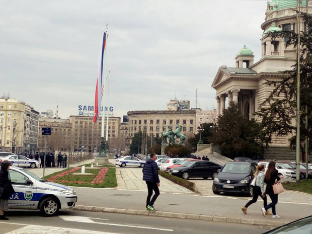 Radi predostrožnosti, Trg Nikole Pašića - od Glavne pošte do Doma sindikata, bio je blokiran za pešake i za automobile. Parlament danas nije zasedao, ali je bio pun poslanika zbog nekoliko sednica odbora. Oni su regularno radili i zgrada nije evakuisana. Mnogi od njih nisu ni znali šta se dešava ispred.