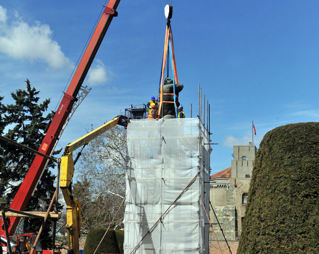 Majstori skidaju deo spomenika na Kalemegdanu / Foto N. Skenderija