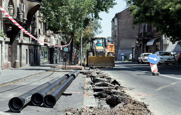 ZBOG radova na rekonstrukciji vodovodne mreže u Bulevaru despota Stefana i sanacije kolovoza u Takovskoj sve do 3. septembra automobili i autobusi javnog gradskog prevoza preko Dorćola će voziti do Trga republike i Novog Beograda. Najveća gužva pravi se na potezu od Džordža Vašingtona do Cetinjske gde je desna traka u smeru ka Trgu republike zatvorena i raskopana, pa je saobraćaj preusmeren na Ulicu cara Dušana. Automobili zaobilaze mašine pa se kroz Cetinjsku "probijaju" do vrha Bulevara despota Stefana kako bi došli do centra grada. Autobusko stajalište Skadarlija je ukinuto, ali putnici i dalje tu čekaju prevoz.