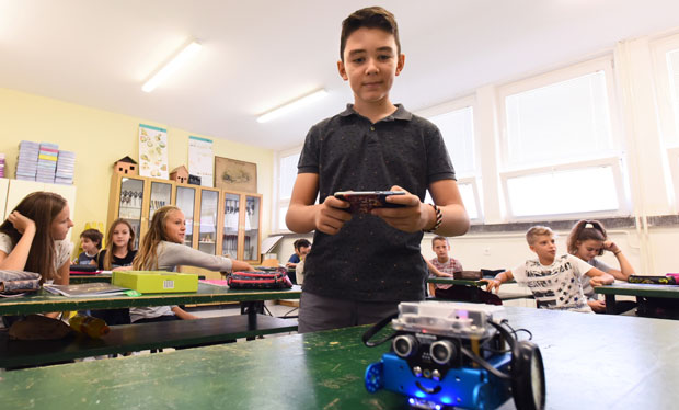 Buduće programere zatekli smo u učionici, gde su nas dočekali sa svojim robotima. Profesorka tehnike i tehnologije i računarstva Nataša Ninkov, priča nam da su oni u petom razredu učili kako da pišu program. Stečeno teorijsko znanje, primenili su i u praksi. U mobilnim telefonima su napravili programe pomoću kojih kontrolišu robote, poput igračaka na daljinsko upravljanje, s tim što ove imaju više operacija i mogućnosti programiranja novih.