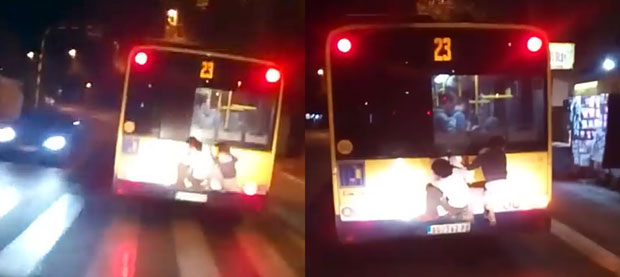 Deca, ne starija od 10 godina, vozila su se držeći se za zadnji deo vozila koje saobraća na liniji 23 od Karaburme ka Vidikovcu. Na snimku se vidi kako su se tako prevezla jednu stanicu, a kada je autobus stao na stajalištu, sišla su i pobegla.
