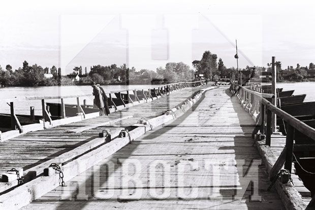 Još jedan snimak iz kasnih tridesetih godina prošlog veka podseća na skele, kojima su sugrađani mogli da pređu sa jedne na drugu rečnu obalu, a da pritom prenesu i poveći teret. Jedna takva skela je snimljena sa automobilom na njoj, a nama ostaje i danas takav prelaz u Ritopeku, gde tamošnji voćari prelaze Dunav sa jedne na drugu obalu.