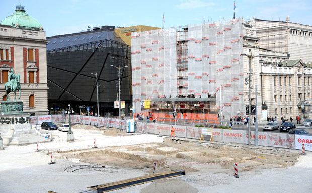 Gradilište u srcu grada pusto je još od proše nedelje, a obilaze ga samo pojedini radnici i arheolozi iz Zavoda. Na pitanja upućena Direkciji za gradsko građevinsko zemljište, koja je zadužena za obnovu Trga, na temu kako će se sada radovi odvijati i da li je mogućnost izmene projekta bila već predviđena davanjem roka od 420 dana za završetak radova, nismo dobili odgovor.