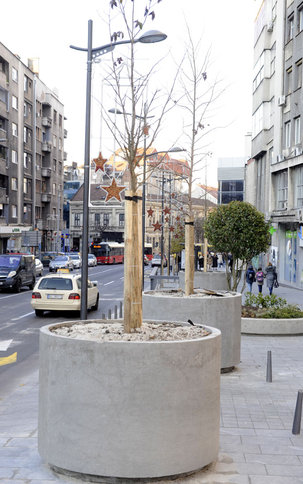 - Do sada je JKP "Zelenilo Beograd" zasadilo šest sadnica lišćara u zastoru i žardinjerama, kao i šiblje, ukrasne biljke, travu i perene uz završne radove postavljanja i vezivanja zalivnog sistema. Zbog nabavke kvalitetnog sadnog materijala i čekanja povoljnih vremenskih uslova, sadnja je tek sada obavljena.