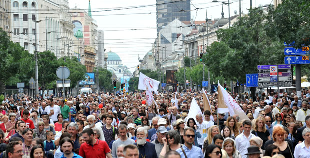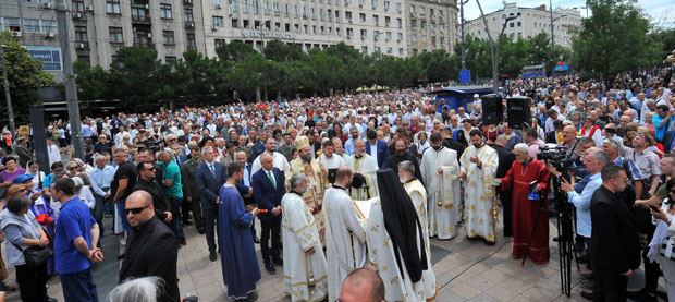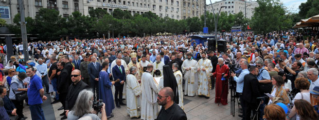 Kolona se dalje kretala knez Mihailovom, Pariskom ulicom i ulicom Sime Markovića do Saborne crkve gde je pročitana druga molitva.