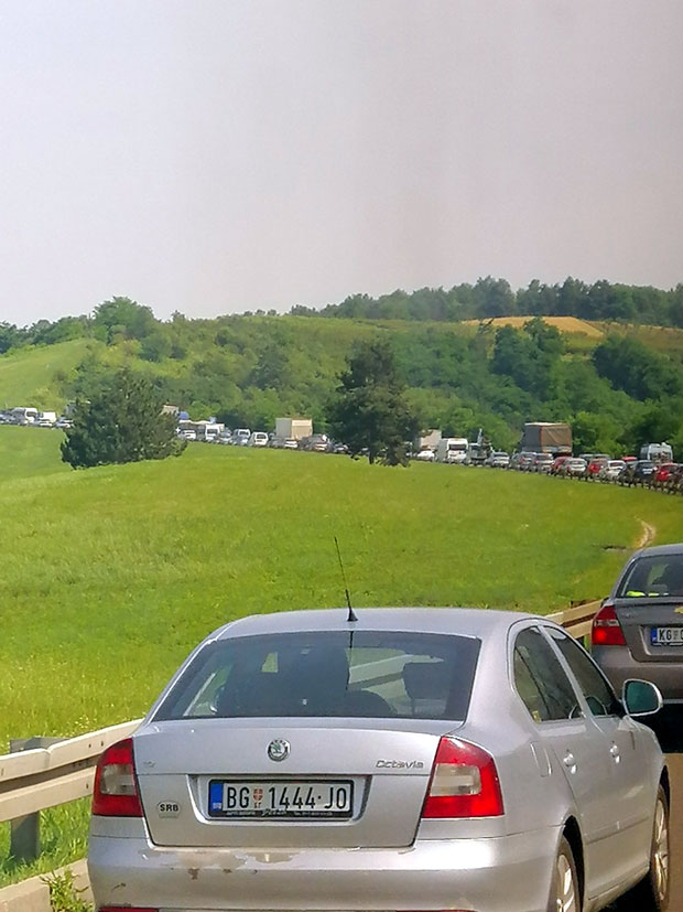 Putnici iz autobusa koji se sudario sa "fordom" prevezli su se do prestonice drugim vozilom koje saobraća na toj liniji. Iako Zakon o bezbednosti putnika u saobraćaju kaže da putnici ne mogu da stoje u vozilima koja saobraćaju auto-putem, takva slika na liniji 493 je svakodnevna. U vozilima, osim 50 mesta za sedenje, stoji i po 40 srednjoškolaca i zaposlenih Mladenovčana.