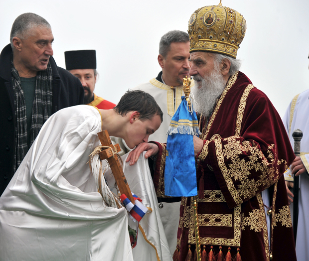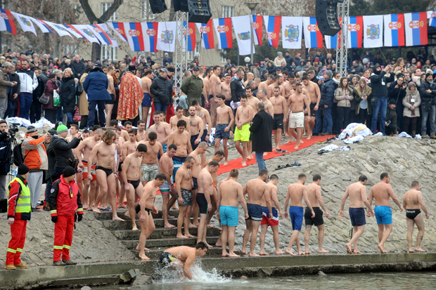 Patrijarh srpski Irinej služio je u nedelju jutro svetu arhijerejsku lutrgiju u Zemunu u Hramu svetog oca Nikolaja, a nakon toga tradicionalna litija krenula je do Dunava, na kej, gde je oko podneva održano plivanje za Časni krst.