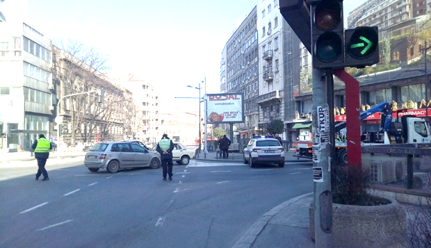 Dva putnička automobila sudarila su se u nedelju ujutru na uglu Dečanske i Nušićeve ulice