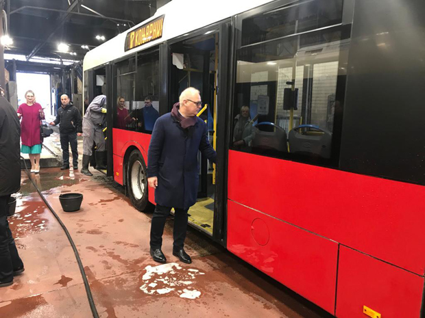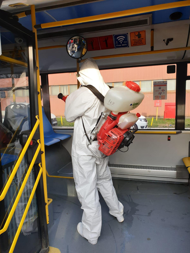 Vesić je na Fejsbuku napisao da se, pošto je nedelja i na snazi je redukovani red vožnje, koristi prilika za dezinfekciju vozila koja nisu danas na trasi.