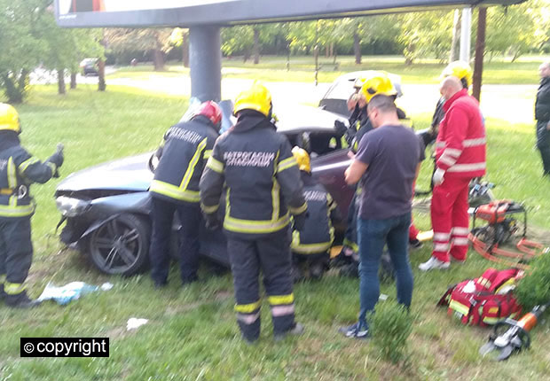 On je udario u bilbord, nakon čega se prevrnuo... Auto je potpuno smrskan.