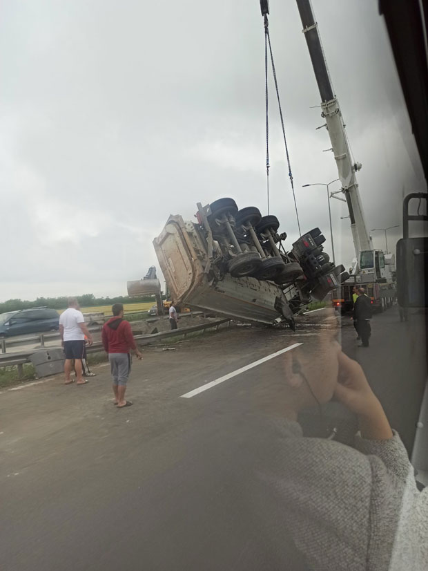 VIDEO: Prevrnuo se šleper na auto-putu, rasuo se pesak po kolovozu, velika GUŽVA kod aerodroma Nikola Tesla (FOTO)