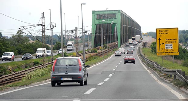 Na Pančevačkom mostu u Beogradu saobraćaj je u zastoju. Jedna žena se porodila u automobilu