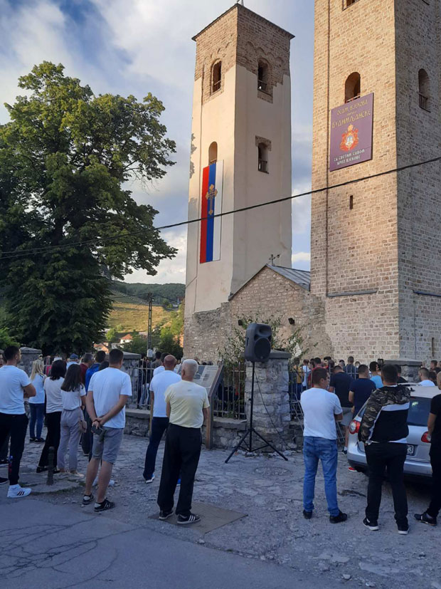 Bjelopoljci i večeras uprkos svemu BRANE SVETINJE: Vernici se okupili pred crkvom u kojoj je NASTALO MIROSLAVLJEVO JEVANĐELJE (FOTO/VIDEO)