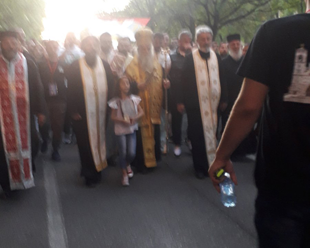 Osmogodišnja devojčica Una Rajović, koja je postala jedna od junakinja litija u Crnoj Gori svoj krsni hod sa sestrom i roditeljima nastavila je nakon molebana u Sabornom hramu Hristovog vaskrsenja ulicama Podgorice.