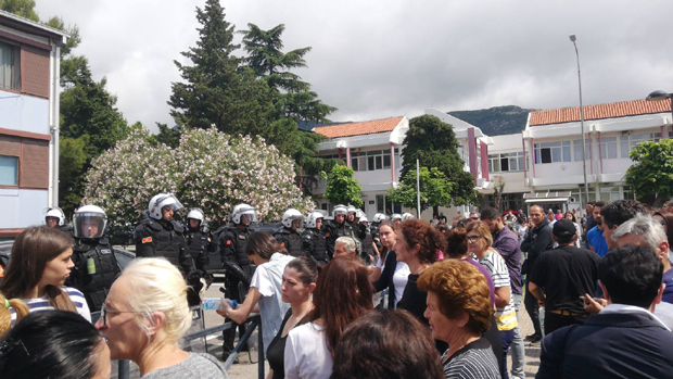 Polomljena su stakla na zgradi Opštine, a policija je upotrebila i hemijska sredstva.