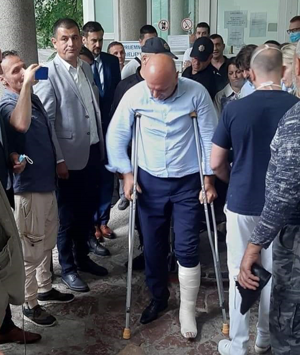 Posle brutalne intervencije policije u Budvi, gradonačelnik Carević, sa nogom u gipsu, poručio: Neću se predati, niti odustati (FOTO)