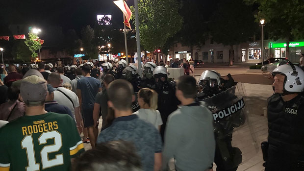 Pripadnici intervente pod punom opremom obezbeđuju ulaz u zgradu Opštine. Narod ih dočekao aplauzom i skandiranjem "Ustala je Crna Gora svetinja se branit mora. Milo lopove".Policija traži od građana da se raziđu.