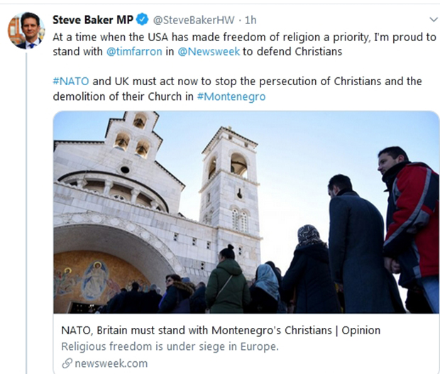 Dvojica britanskih parlamentaraca Tim Faron i Stiv Bejker, u otvorenom pismu u listu Njuzvik ukazali su na alarmantno kršenje verskih prava u Crnoj Gori