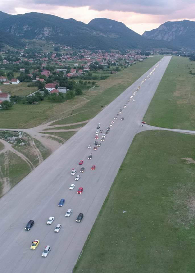 Pre kretanja u auto litiju, Bernci su na pisti aerodroma koji se poodavno ne koristi, još jednom automobilima napravili pravoslavni krst.