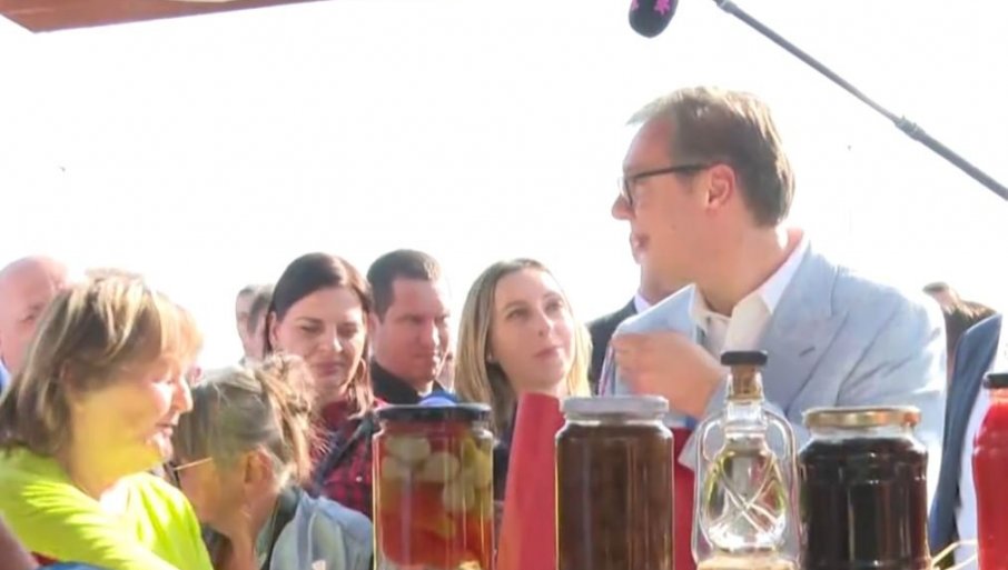 Vučiću meštani u razgovoru predstavljaju domaće proizvode, ručni rad, a govore i o turizmu. Predsednik obilazi lokalne građane, a jedna žena mu je čak i pesmu izrecitovala: