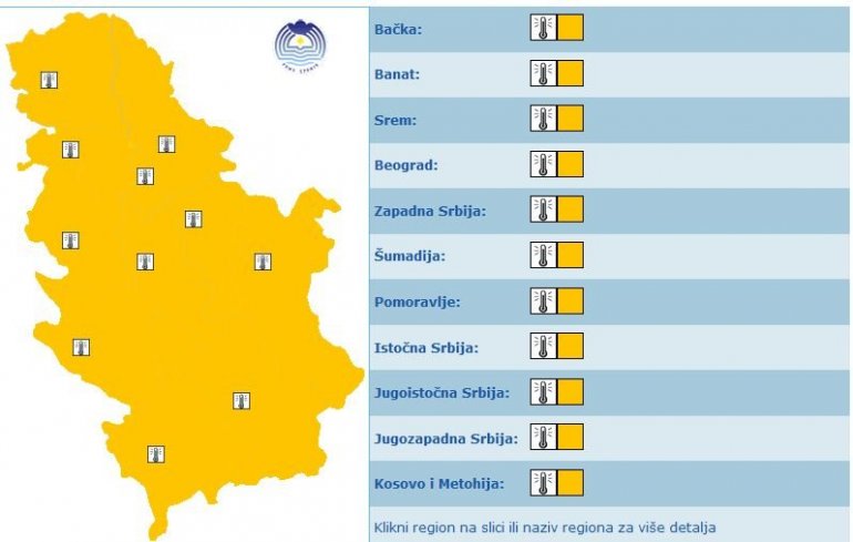 REPUBLIČKI hidrometeorološki zavod upozorio je da se od sutra do petka na području Srbije očekuju visoke temperature.