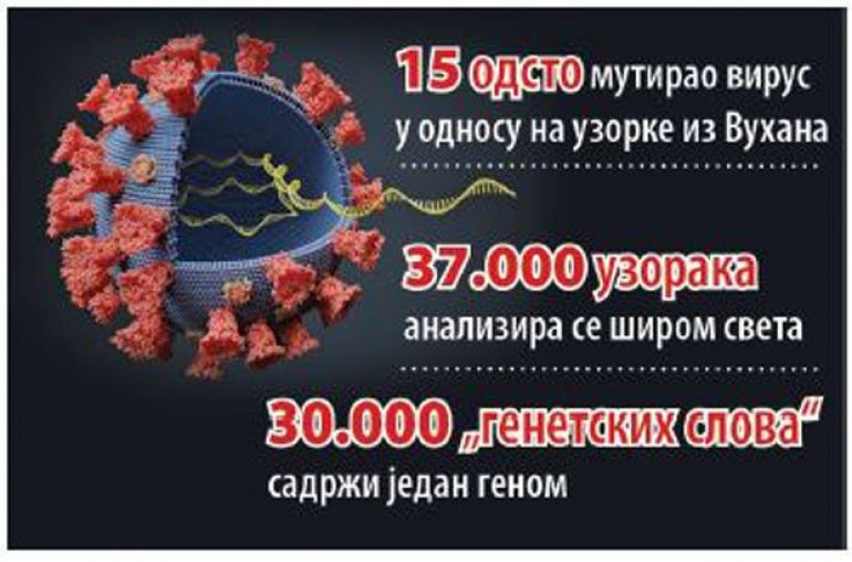 U svetu se sada sekvencira više od 37.000 uzoraka virusa iz svih krajeva, kako bi se potpuno razotkrila zarazna priroda kovida 19. Odnosno da bi se ogolio njegov genom, a to je zapravo lanac od 30.000 genetskih slova koja sadrže sve što je virusu potrebno da se namnoži i raširi, koji je još u januaru, mnogo brže nego što se očekivalo, otkrio južnokorejski tim profesora Jong-Žen Žanga. Iako su se od tada u ovaj posao uključili mnogi timovi, u najopremljenijim laboratorijama, otkriće profesora Jong-Žen Žanga - da je virus korona 80 odsto identičan SARS-u, još se smatra najvažnijom sekvencom slagalice koja tek treba da se posloži.