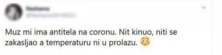 - Muž mi ima antitela na koronu. Nit kinuo, niti se zakašljao, a temperatura ni u prolazu - napisala je ona.