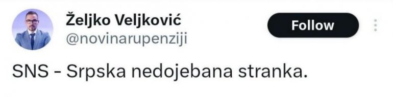 A pored uvreda upućenih Vučiću, Šolakov novinar na Tviteru je pogrdnim i vulgarnim izrazima nazvao i Srpsku naprednu stranku (SNS).