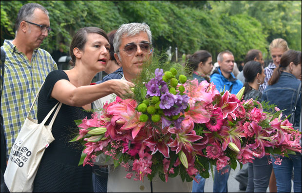 Glumici veka, jednoj od najvećih, poslednje zbogom su uputile kolege Voja Brajović, Tihomir Stanić, Branimir Brstina, Branko Cvejić, Nikola Đuričko, Aleksandra Nikolić, Milica Mihajlović, Tamara Vučković...