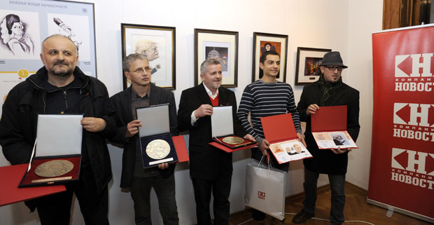 Iz Dmitrovićevih ruku, najuspešniji na ovom konkursu, primili su priznanja - "Zlatnog", "Srebrnog" i "Bronzanog Pjera", nagradu za portret i mladog karikaturistu. Prva nagrada, ostala je u kući, pripala je karikaturi "Enklava", koju je uradio karikaturista našeg lista Goran Divac.