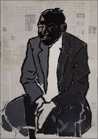 - Reč je o jednoj promeni na pozadini, koja više nije samo platno, već su to novine preko kojih slikam, više crtam. One su tu kao jedan vizuelni element, grafizam koji treba da obogati tu pozadinu, tako da nemaju određeno značenje u političkom smislu, ali na kraju, može i tako da se tumači. Na mojim slikama je očigledno i odsustvo boje. To namerno radim. Eliminišem boje da bih naterao posmatrača da o delima razmišlja. Za mene je crtež uvek misaoni proces, za razliku od boje, koja izaziva neka lepa osećanja.
