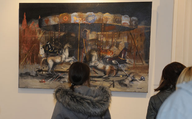 Posetioci razgledaju Kaporove slike ,foto Z.Jovanović