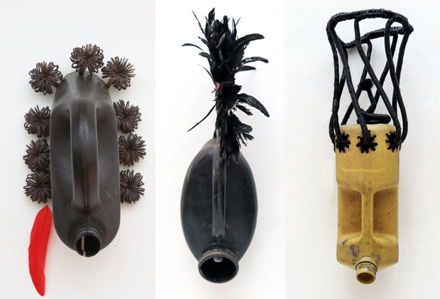 Od kanistera za benzin Hazum stvara instalacije koje direktno aludiraju na čuvene afričke maske: