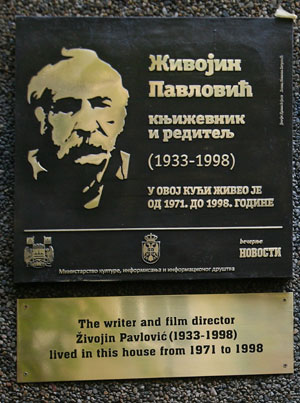 U AKCIJI našeg lista, “Vratimo dug piscima”, zajedničkog poduhvata Ministarstva kulture i “Večernjih novosti”, 2011. je otkrivena spomen-ploča Živojinu Pavloviću na zgradi u Ulici majke Jevrosime 39, u kojoj je živeo od 1971, do smrti 1998. godine. To je i jedino obeležje koje umetnik genijalnog dara ima u Beogradu.