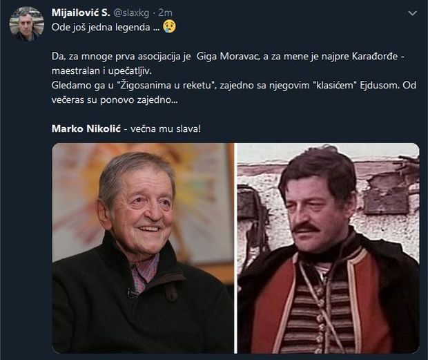 Korisnici društvenih mreža nisu mogli da sakriju tugu pošto je u sredu uveče objavljeno da je preminuo slavni srpski glumac Marko Nikolić