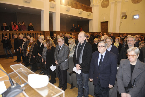 U svečanoj sali Kinoteke, koja će od 23. februara poneti ime "Makavejev", od reditelja su se oprostili Zdravko Šotra, Branka Petrić, Branko Cvejić, Rada Đuričin, Darko Bajić, Eva Ras, Mileta Prodanović, Milutin Petrović, Radoslav Zelenović...