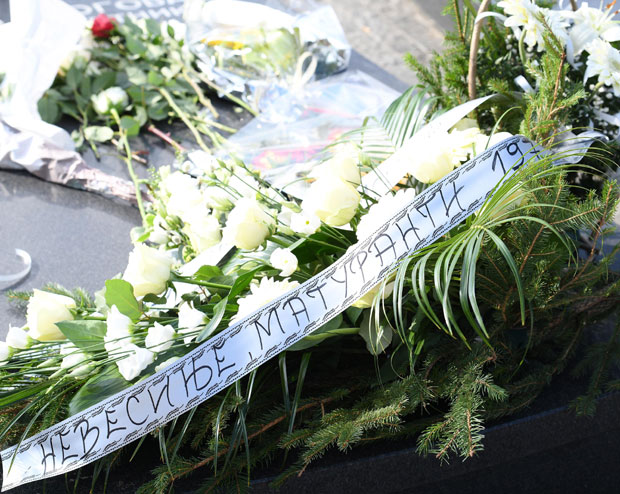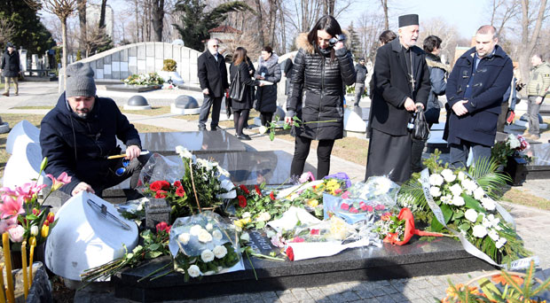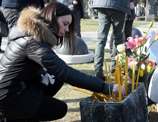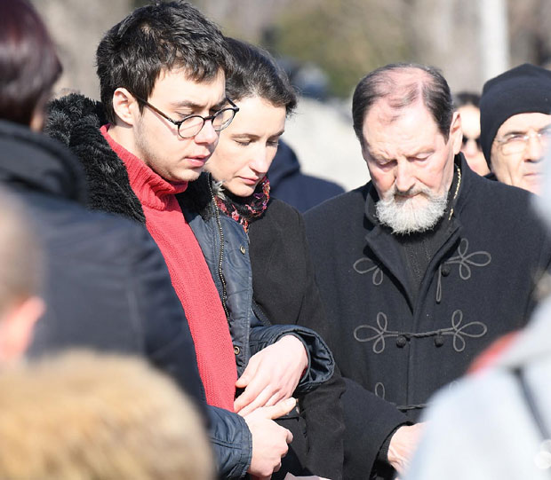 Milica je na grob položila buket crvenih ruža, a sinovi Gavrilo i Miloš spustili su bele ruže.