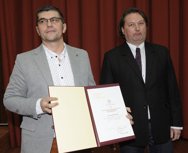 LAUREAT Nacionalne nagrade iz oblasti bibliotekarstva “Janko Šafarik” je dr Dejan Vukićević (na slici levo), koji u Odeljenju posebnih fondova Narodne biblioteke Srbije rukovodi Fondom za stare i retka knjige. Pored uručenja ovog prestižnog priznanja, proslavu Dana NBS, započetu svečanim besedama Blaškovića i Milašinovića uz bogat muzički program, upotpunilo je i otvaranje izložbe “Žene u srpskom Đure Jakšića” ispred Amfiteatra NBS, razgovor Gorana Milašinovića sa bibliotekarima, te predstavljanje izdavačke produkcije NBS iz bibliotečko-informacione delatnosti.
