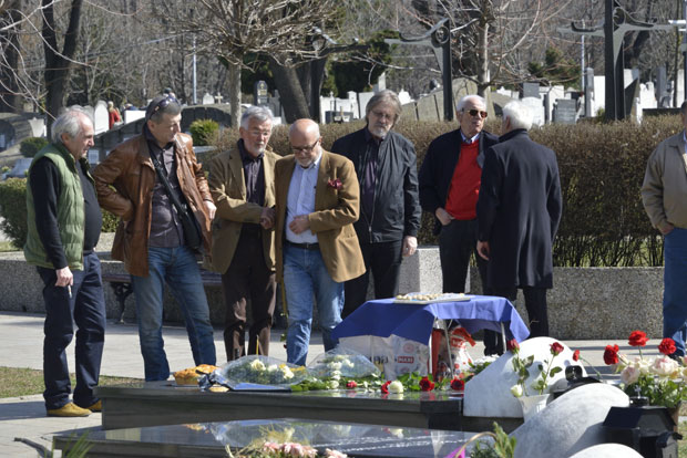 Večnu kuću voljenog beogradskog šarmera, koju od oktobra prošle godine deli sa voljenom životnom i umetničkom saputnicom Milenom Dravić, obišle su kolege glumci Milan Caci Mihailović, Goran Sultanović, Milica Mihajlović i Branka Petrić. Okupljeni su u tišini palili sveće i ostavljali crvene i bele ruže na grobu, a sveštenik je održao opelo.